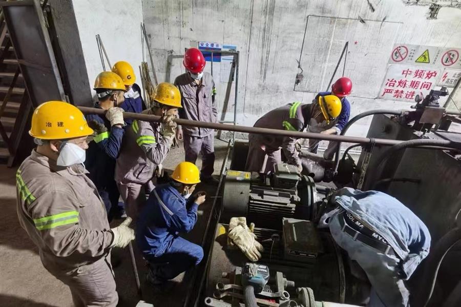 廣西北海市鐵山港區(qū)二煉鋼輔助設(shè)備維保年度承包項目,十余名工人在二煉鋼中頻爐液壓站進(jìn)行電機(jī)搶修,加班完成拆除更換任務(wù)。