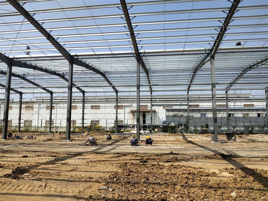 柳鋼環(huán)保公司鋼渣廠中間料場棚化項目之主體工程,工人正在加班開展工作。