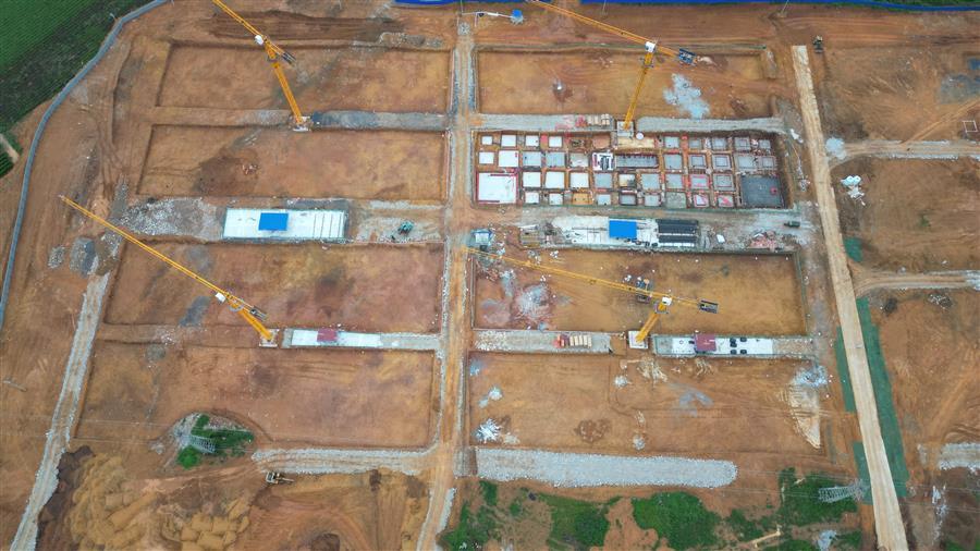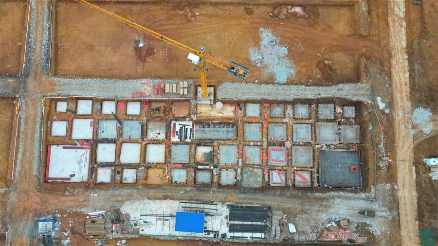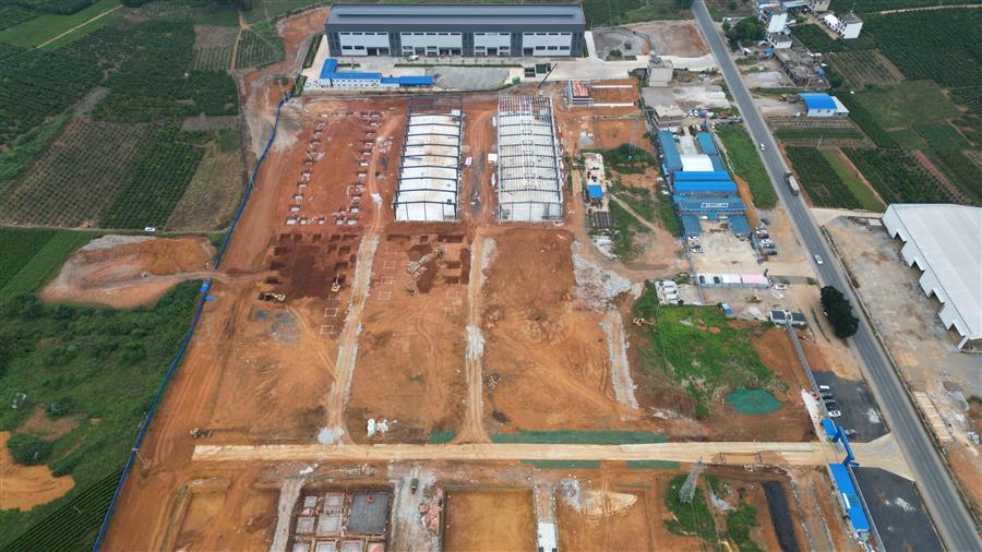 目前,該項(xiàng)目設(shè)備房消防水池外架搭設(shè)、模板安裝已完成,4號(hào)廠(chǎng)房側(cè)面檁條安裝完成,5號(hào)廠(chǎng)房屋面檁條安裝完成50%,6號(hào)樓基礎(chǔ)承臺(tái)已完成,4號(hào)樓地基處理注漿完成70%等。