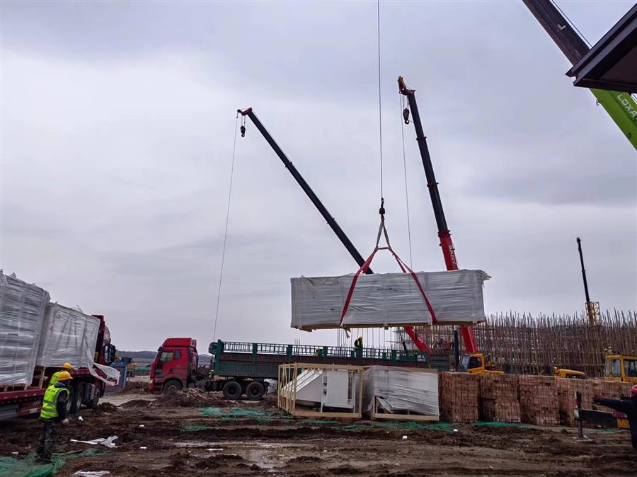 設(shè)備進場前,項目部對管理人員和工人做好三級安全教育和安全技術(shù)交底,并對現(xiàn)場進行了安全檢查,認真做好作業(yè)平臺的臨邊防護,確保安全生產(chǎn)。目前,項目現(xiàn)場正在有序開展焊接吊風(fēng)機平臺工作,工人們爭分奪秒,連續(xù)奮戰(zhàn),抓好工作的關(guān)鍵面,為下一步安裝冷風(fēng)機做好準備。