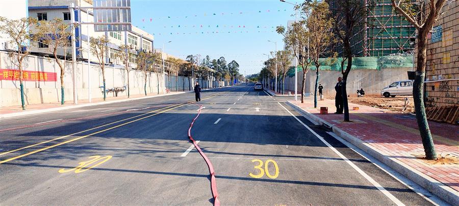 項目道路總長度為619.01米,規(guī)劃道路橫斷面寬度 24 米的雙向四車道,瀝青混凝土路面。自開工以來,廣東公司及項目部積極組織施工,科學(xué)統(tǒng)籌安排各項資源,努力克服種種困難,全力以赴、積極應(yīng)對,圓滿完成建設(shè)任務(wù)。