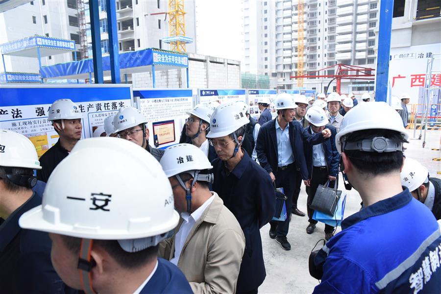 春雨潤邕,綠意蔥蘢。4月10日,集團(tuán)公司2023年第二季度安全生產(chǎn)工作會議暨質(zhì)量安全標(biāo)準(zhǔn)化現(xiàn)場觀摩會,在冶建公司桂鴻分公司施工的北投時代(二期)項(xiàng)目舉行。集團(tuán)公司總經(jīng)理、黨委副書記、董事羅濤,副總經(jīng)理陳禮松,總經(jīng)理助理、企業(yè)管理部總經(jīng)理、市場經(jīng)營部總經(jīng)理劉新寧,集團(tuán)公司各子公司負(fù)責(zé)人及相關(guān)人員近300人參加了此次觀摩會。