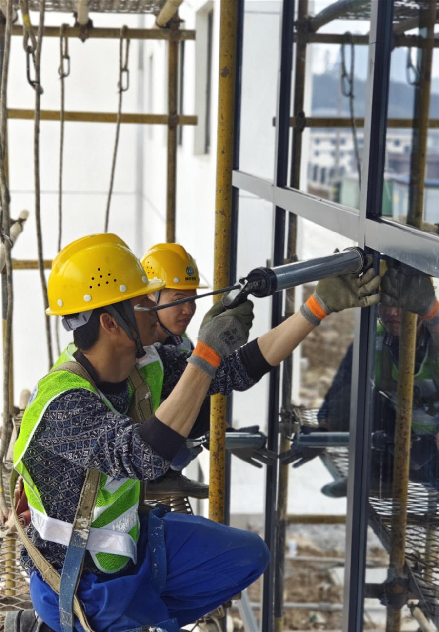 “明德中學項目正在進行宿舍樓外墻涂料和鋁合金窗玻璃膠施工,及綜合體育館和宿舍樓天面打磨等施工;明德小學項目正在進行2#、3#綜合教學樓主體施工,及午托樓砌筑、綜合體育館網架屋面等施工。”明德中小學項目管理人員說。兩個學校項目復工復產后,項目人員通力合作、全力以赴,各種施工機械開足馬力、連班作業(yè),保障各項工作有序開展,確保學校民生項目按期交付。