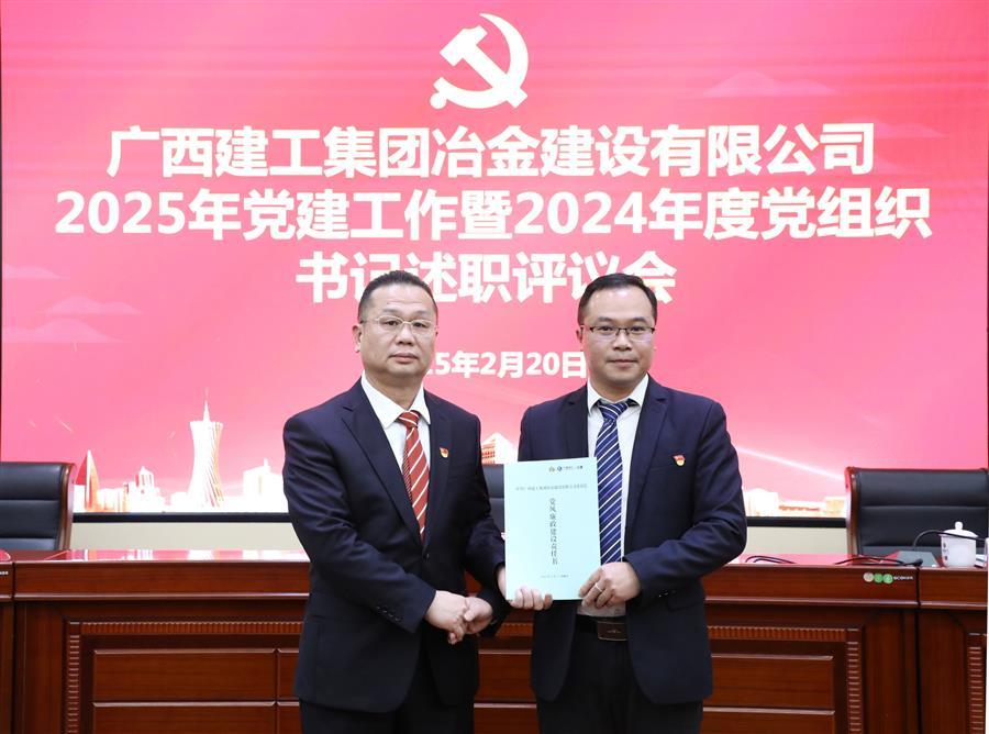 2月20日,冶建公司2025年黨建工作暨2024年度黨組織書記述職評(píng)議會(huì)議在公司1號(hào)樓第二會(huì)議室召開。公司黨委書記、董事長(zhǎng)覃振華參加并講話,黨委副書記、總經(jīng)理蒙勝益參加,黨委副書記、紀(jì)委書記、工會(huì)主席賴海標(biāo)主持。