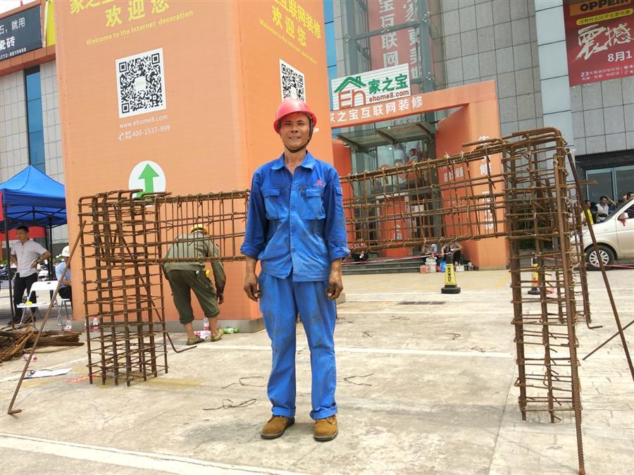盧國和師傅拿到比賽相關資料后,立刻認真對照要求、分析圖紙、挑選型號、綁扎鋼筋……動作一氣呵成,在較短的時間內(nèi)高質(zhì)量完成任務,奪得了“鋼筋工”項目比賽第二名!