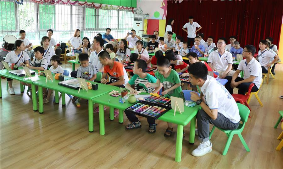 活動當天,參加活動的青年志愿者在福利院工作人員的帶領(lǐng)下參觀了福利院的教室、寢室、廚房、餐廳以及舞蹈室等孩子們的生活、學(xué)習(xí)場所,詳細了解了孩子們的身體健康、學(xué)習(xí)生活等情況。隨后,青年志愿者們和福利院孩子們一起圍成“同心圓”,伴隨著歡快的音樂聲,青年志愿者們和孩子們一起玩起了“擊鼓傳球”、“你畫我猜”、“蒙眼過障礙物”等游戲。在游戲過程中,每一個孩子都融入到了互動環(huán)節(jié)中,現(xiàn)場氣氛融洽。青年志愿者還與孩子們一起種植綠植,在老師的講解下,大家順利的完成了一件又一件的綠植作品。