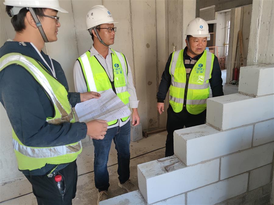 黃開造檢查砌體施工質(zhì)量